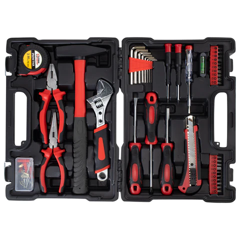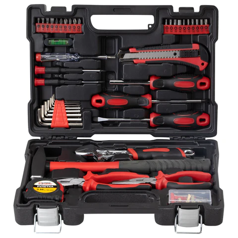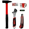 Инструменты изготовлены из закалённой углеродистой стали. Рукоятки выполнены из нескользящего ПВХ для максимального комфорта и безопасности во время использования. В состав набора входят инструменты, необходимые в столярно-слесарном деле, для ремонта автомобиля и любой колесной техники, бытовой техники, а также мебели.