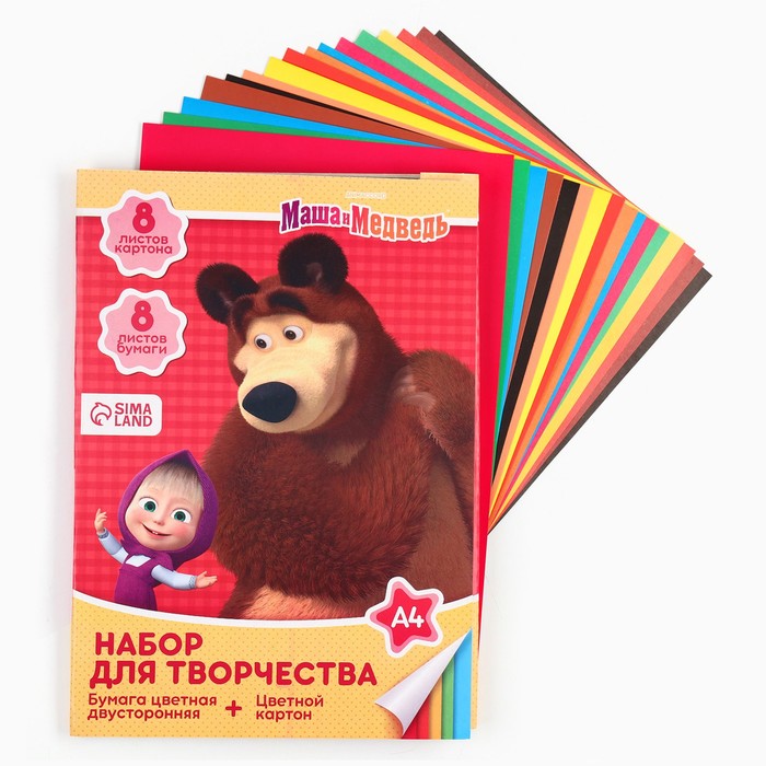 Набор для детского творчества А4, 16 листов, 16 цветов картон цветной немелованный, односторонний, 200 г/м2 + 16 листов, 16 цветов бумага цветная двусторонняя, газетная, в папке
