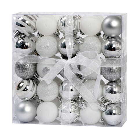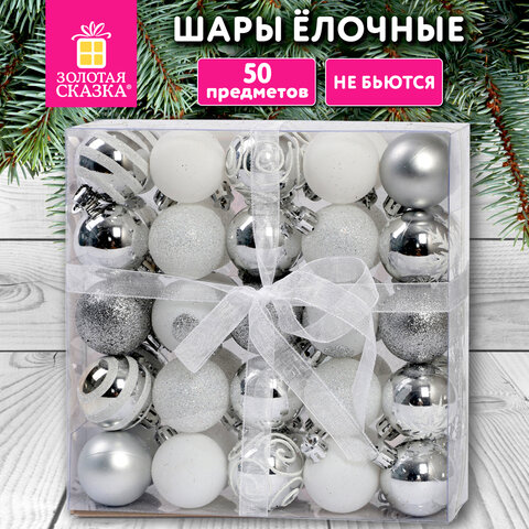 Шары елочные НАБОР 50 предметов "Новогодняя Сказка", пластик, золото/белый, ЗОЛОТАЯ СКАЗКА, 592593