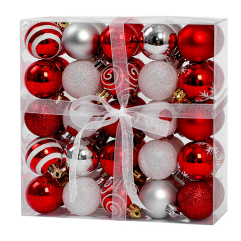 Шары елочные НАБОР 42 предмета "Red and White Shine", пластик, красный/белый, ЗОЛОТАЯ СКАЗКА, 592589