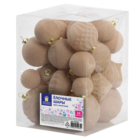Шары елочные НАБОР 35 предметов "Зефирки", пластик, софт-тач, молочный, ЗОЛОТАЯ СКАЗКА, 592588