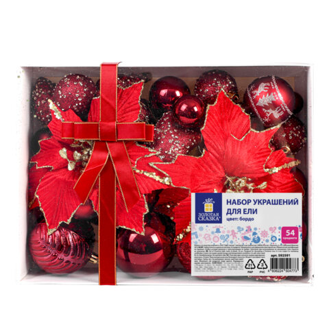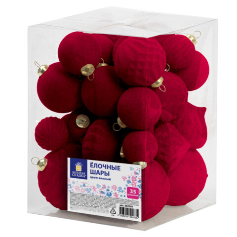 Шары елочные НАБОР 35 предметов, "Гранат", пластик, софт тач, винный, ЗОЛОТАЯ СКАЗКА, 592587