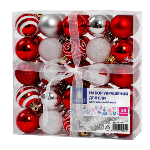 Шары елочные НАБОР 50 предметов "Red&Snow Winter", пластик, красный/белый, ЗОЛОТАЯ СКАЗКА, 592595