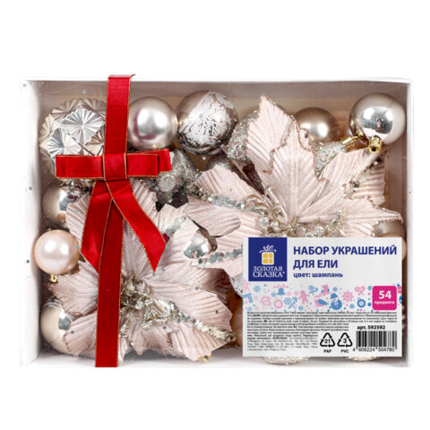Шары елочные НАБОР 54 предмета "Light Champagne Style ", пластик, шампань, ЗОЛОТАЯ СКАЗКА, 592592