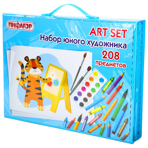 Набор ЮНОГО ХУДОЖНИКА "Тигренок" для рисования и творчества с мольбертом ПИФАГОР, 208 предметов, 664632