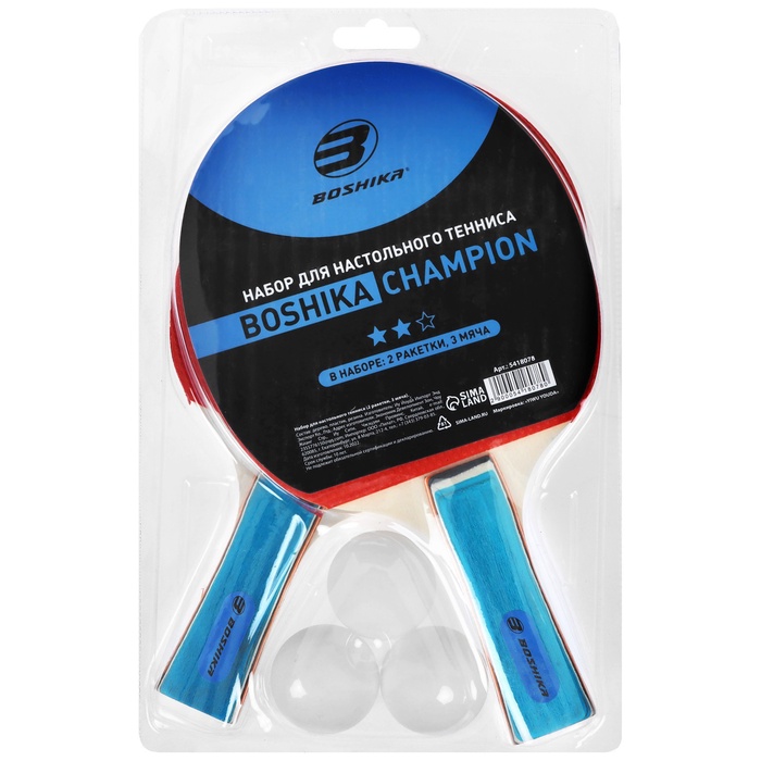 Набор для настольного тенниса BOSHIKA Training: 2 ракетки, 3 мяча, 1 звезда