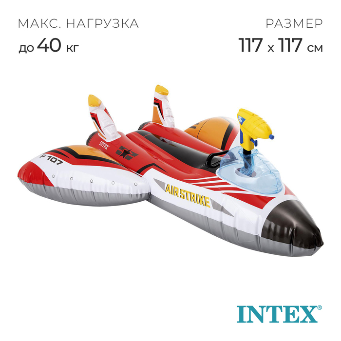 Плот для плавания «Самолет», 117 х 117 см, с водной пушкой, от 3 лет, до 40 кг, 57536NP, цвет МИКС