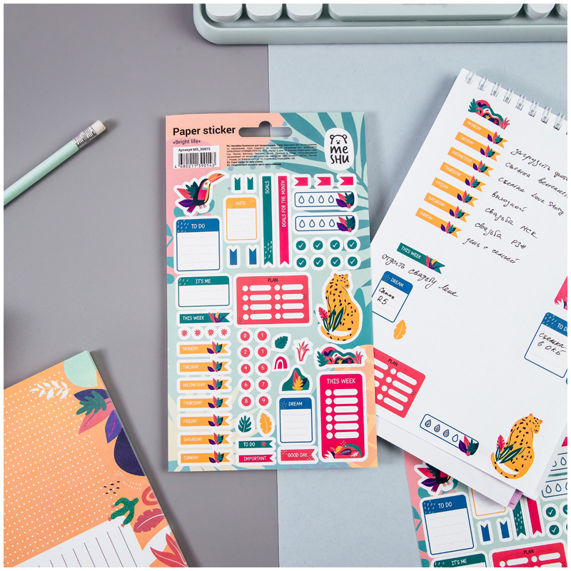 Набор бумажных наклеек MESHU Grace — это 10 листов с популярными стикерами молодёжного бренда. Изделия подходят для украшения страниц, декорирования предметов интерьера и техники. Размер одного листа — 210*120 мм.