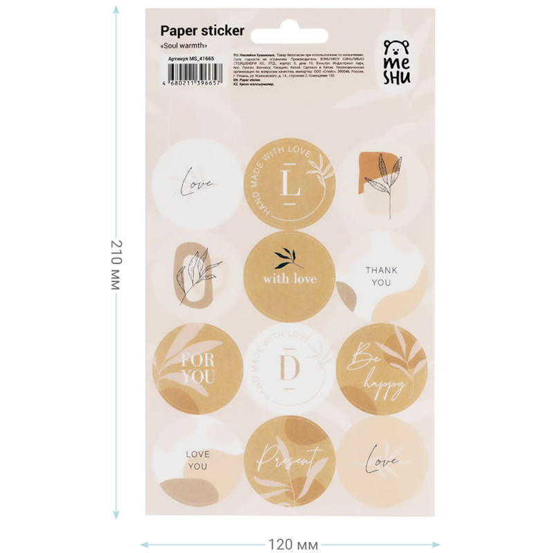 Бумажные наклейки MESHU Soul warmth – отличный помощник в креативном оформлении записей в блокнотах и дневниках. На листе размером 12*21 см расположены 12 наклеек, изготовленных из самоклеящейся бумаги.