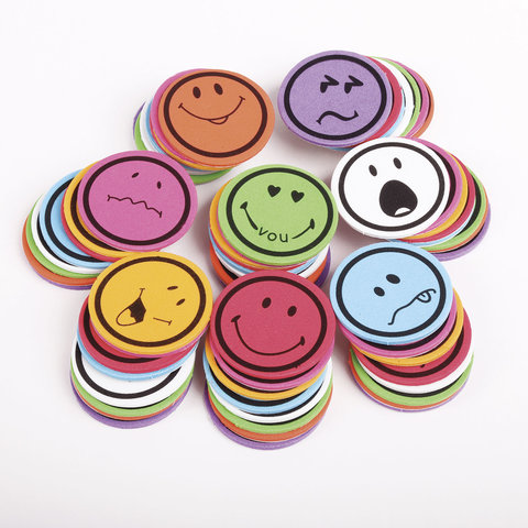 Изготовлены из фоамирана (EVA). В комплекте 60 красочных декоративных элементов в форме смайлов. Предназначены для детей от 3 лет. Размер 3х3 см. Поставляются в пакете с европодвесом. Качественный клеевой слой обеспечит надежную фиксацию на любых поверхностях.