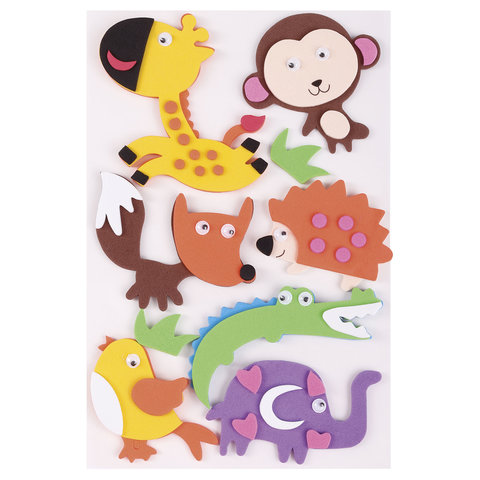 Изготовлены из фоамирана (EVA). В комплекте 9 красочных декоративных элементов в форме животных. Предназначены для детей от 3 лет. Поставляются в пакете с европодвесом с вкладышем размером 10х16 см. Качественный клеевой слой обеспечит надежную фиксацию на любых поверхностях.
