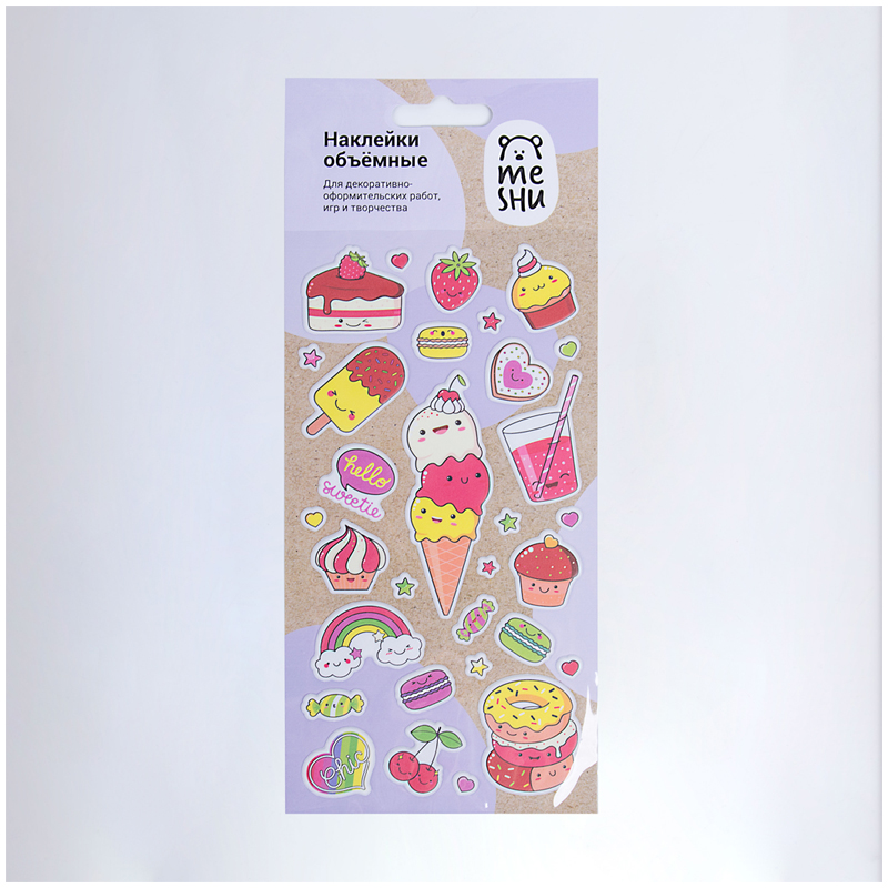 Яркие, объёмные наклейки для декорирования. Идеально подходят для украшения любых поделок, их можно приклеить на открытку, подарочную упаковку, канцтовары, предметы интерьера, мобильный телефон, ноутбук или любой другой аксессуар. Легко отделяются от основы и надежно держатся.