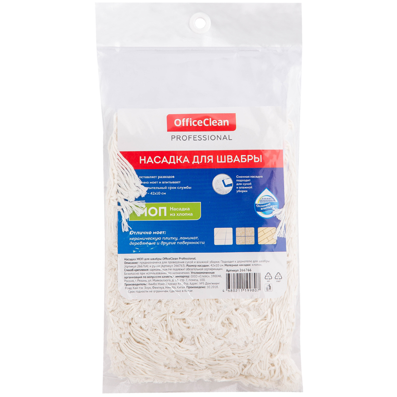 Насадка МОП для швабры-рамки OfficeClean Professional предназначена для проведения сухой и влажной уборки. Изготовлена из хлопка с длинным ворсом. Благодаря гигроскопичности материала изготовления данной насадки, а именно хлопку, при сухой уборке насадка хорошо убирает пыль, не позволяя ей разлетаться, а при влажной уборке отлично впитывает воду, не оставляя разводов на полу. <br/>Подходит к швабре - 266759.<br/>Широкий ассортимент насадок для швабр OfficeClean - это прекрасный выбор для сухой и влажной уборки помещений, которые позволяют сэкономить время и усилия, затрачиваемые ранее на ручную уборку.