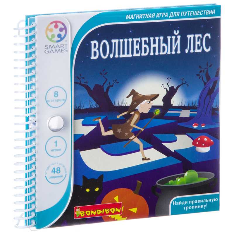 Злой колдун перепутал все тропинки в лесу, чтобы помешать маленькой ведьмочке найти спелые мухоморы и волшебный горшочек, чтобы сварить зелье. Помоги маленькой ведьмочке и другим сказочным персонажам, живущим в лесу. Как только ты проложишь нужные тропинки, расположив на игровом поле все 9 плиток, задание выполнено. Каждое задание имеет несколько вариантов решения, один из них можно найти в конце книжки с заданиями. В комплекте блокнот в твердом переплете с магнитной подложкой на пружине, 9 магнитных деталей, буклет с 48 заданиями от простых до очень сложных. Блокнот удобно застегивается на кнопку, размеры позволяют взять его с собой в любое путешествие. Играй, когда захочется! Игра развивает логику, концентрацию, пространственное представление, визуальное восприятие, а также улучшает навык решения проблем.