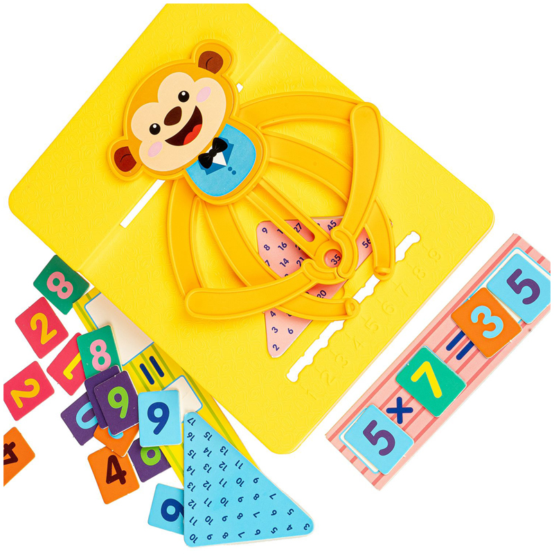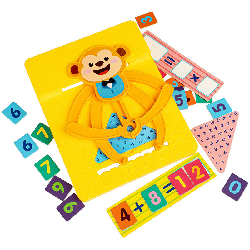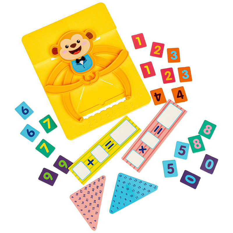 Игра «СЧИТАЙ И УМНОЖАЙ» в виде обезьянки позволяет тренировать математические навыки ребенка на умножение (розовая карточка), или на счет (голубая карточка). В комплект входят: игрушка-калькулятор, цифровые карты, аксессуары.