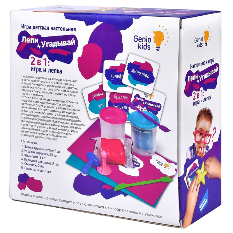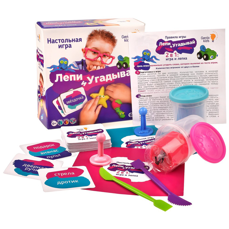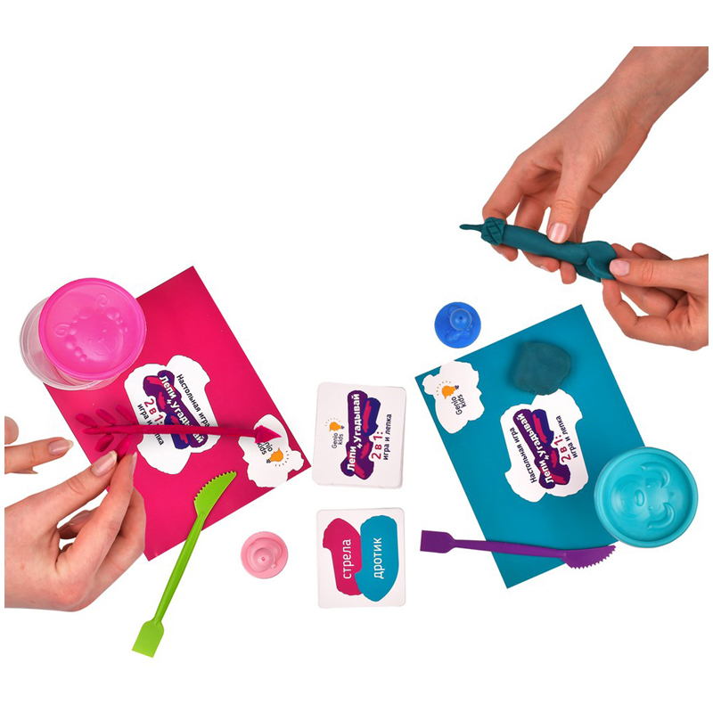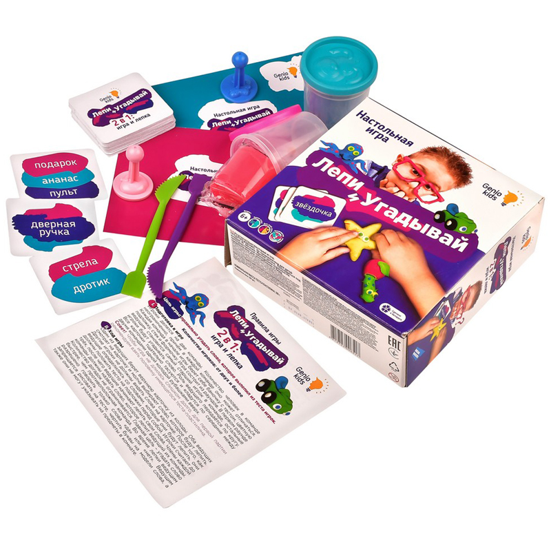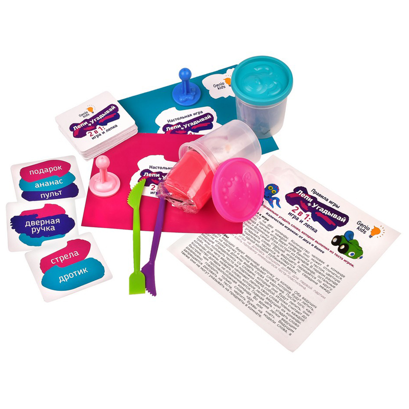 Игра настольная для лепки из теста.<br/>В состав набора входит тесто, подложка для лепки, штампики, стеки, карточки, правила