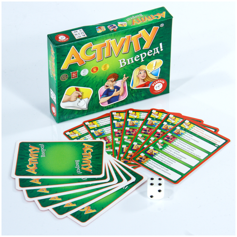 Дорожная версия игры «Activity» теперь для детей. В течение одной минуты вы должны разъяснить новые слова и выражения с помощью «Рисования», «Объяснения» и «Пантомимы». В этой игре есть три уровня сложности. Самый сложный с наибольшим количеством очков или полегче с меньшим количеством очков. В составе игры 36 карточек (всего 648 слов и словосочетаний), шестигранный кубик и правила игры.