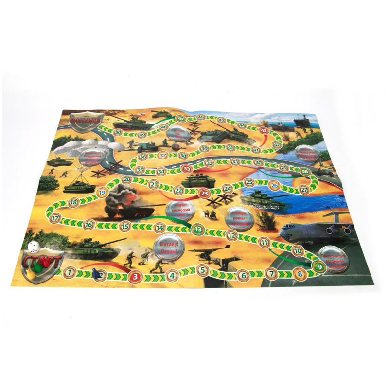 Игра будет интересна как детям, так и взрослой компании. Игроки с набором элементов, усаживаются напротив друг друга, так, чтобы противник не смог подсмотреть расположение его войск. Танки расставляются на поле, в клетке друг от друга. И сражение началось! Игроки поочерёдно угадывают местоположение боевой техники друг друга и уничтожают её. Победитель тот, на поле которого есть танки. В игре принимают участие два игрока. Игра развивает стратегию и тактику. В процессе дети учатся логически размышлять. Игра развивает внимание и усидчивость. После начала игры, совершать передислокацию войск нельзя! В наборе: 2 игровых поля, 22 различных танка, 400 фишек.