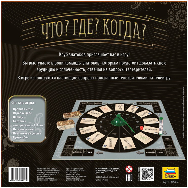 Настольная игра «Что? Где? Когда? » включает в себя все особенности одноименной популярной телевизионной игры. Вы сможете почувствовать себя знатоком или ведущим, проверить свою эрудицию, смекалку и научиться играть в команде.