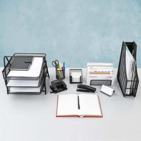 Настольный набор из металла BRAUBERG "Germanium" - это готовое решение для офиса. Позволяет содержать в порядке все письменные принадлежности и документы, а также эффективно их использовать.