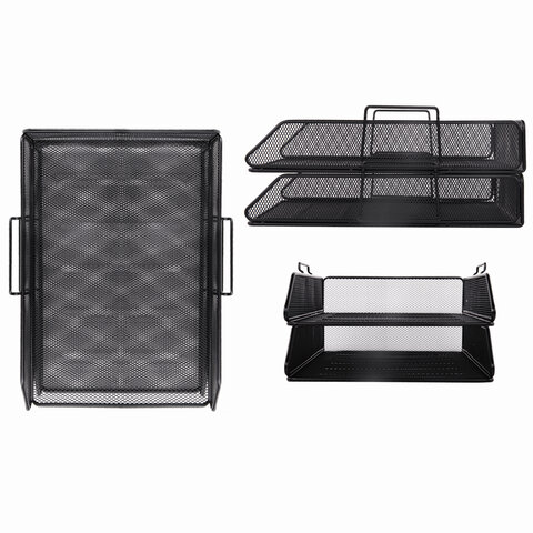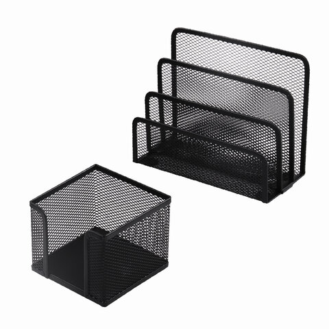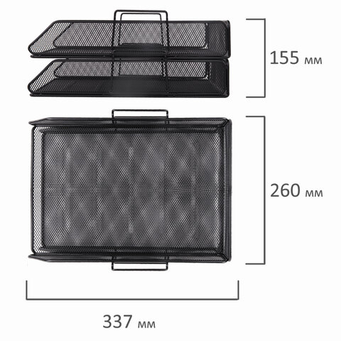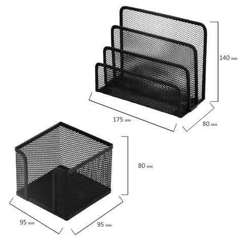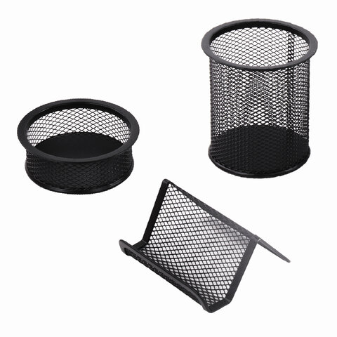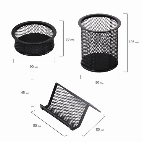 У всех подставок в наборе имеются мягкие подушечки на дне, предотвращающие скольжение и не царапающие мебель. Предметы изготовлены из металлической сетки, выполнены в лаконичном черном цвете.