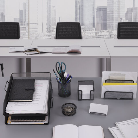 Настольный набор из металла BRAUBERG "Germanium" - это готовое решение для офиса. Позволяет содержать в порядке все письменные принадлежности и документы, а также эффективно их использовать.