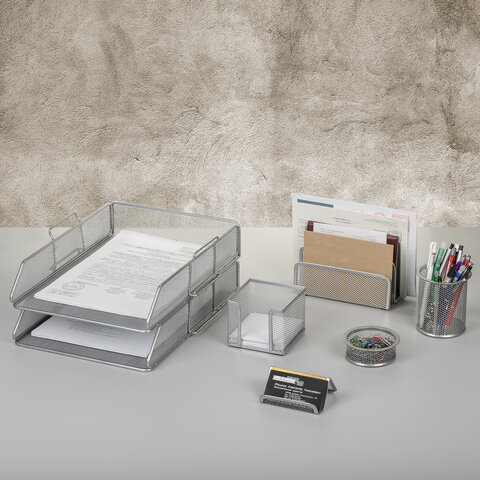 Настольный набор из металла BRAUBERG "Germanium" - это готовое решение для офиса. Позволяет содержать в порядке все письменные принадлежности и документы, а также эффективно их использовать.