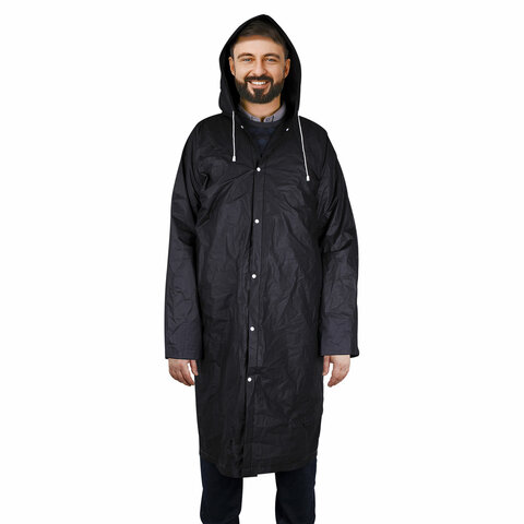 Дождевик-куртка чёрная на кнопках С КАРМАНАМИ, виниловая, размер 50-56, рост 170-185, ГРАНДМАСТЕР, 610942