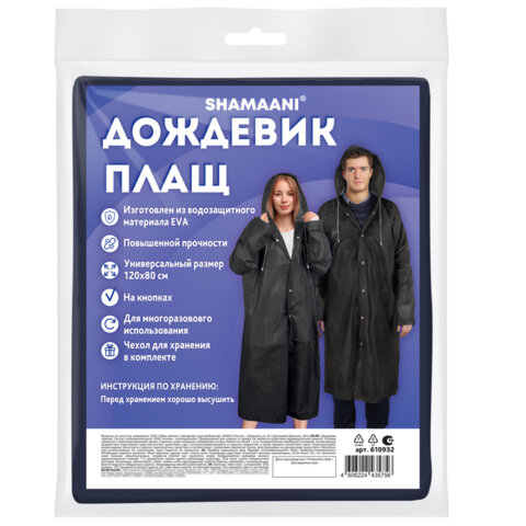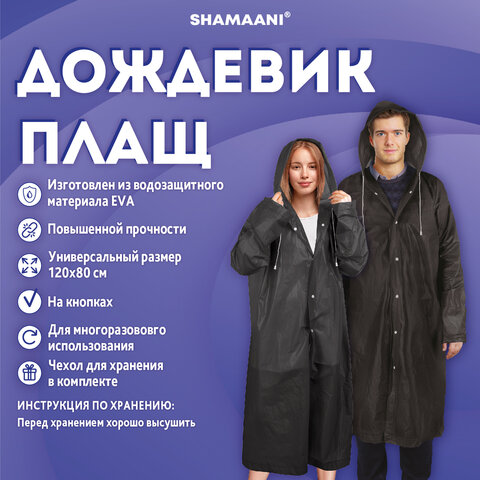 Дождевик-плащ SHAMAANI на кнопках и с капюшоном предназначен для защиты от ветра, дождя и повышенной влажности воздуха. Идеально подойдет для работы на улице, отдыха на природе, рыбалки, пикника и городских прогулок.