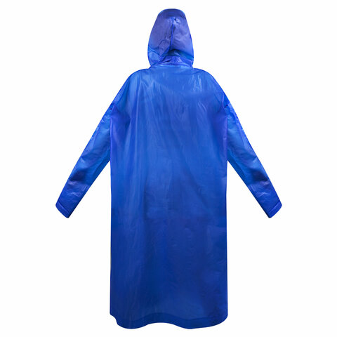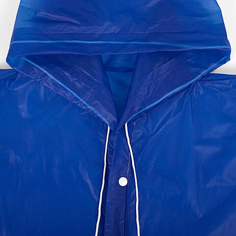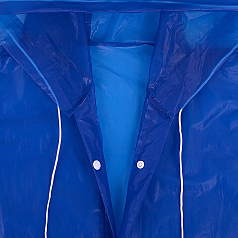 Дождевик-плащ универсального размера с капюшоном изготовлен из этиленвинилацетата (EVA). Поверхность дождевика рельефная. Застёгивается на 6 пар кнопок из полипропилена (PP). В капюшоне есть кулиска с пластиковыми наконечниками.