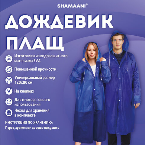 Дождевик-плащ SHAMAANI на кнопках и с капюшоном предназначен для защиты от ветра, дождя и повышенной влажности воздуха. Идеально подойдет для работы на улице, отдыха на природе, рыбалки, пикника и городских прогулок.