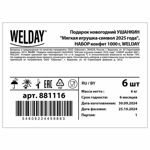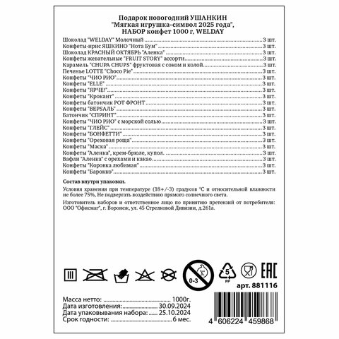 Новый год – время волшебства, и подарок "УШАНКИН" создан, чтобы добавить еще больше радости и ярких моментов в этот праздничный сезон! В наборе 1 кг популярных кондитерских изделий, упакованных в картонную коробку с новогодним оформлением.