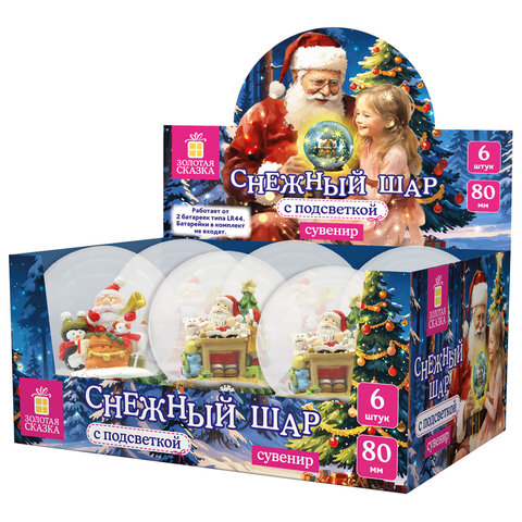 Снежный шар с LED-подсветкой "Дед Мороз" d80мм, полистоун/стекло, ассорти 2 дизайна, ЗОЛОТАЯ СКАЗКА, 592599