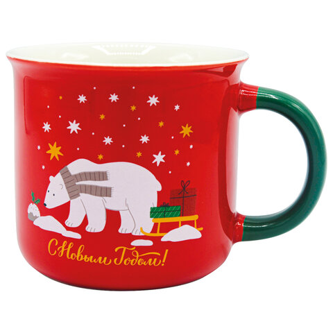 Кружка новогодняя 380 мл, "Белый мишка", 9,5х9 см, каменная керамика, ЗОЛОТАЯ СКАЗКА, 592542
