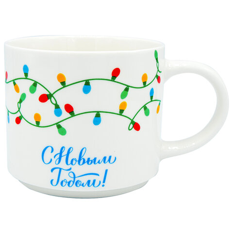 Кружка новогодняя 420 мл, "Гирлянда", 10х9см, каменная керамика, ЗОЛОТАЯ СКАЗКА, 592546