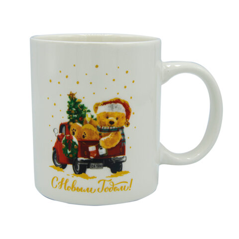Кружка новогодняя 330 мл, "Мишка на машинке", 8х9,5см, каменная керамика, ЗОЛОТАЯ СКАЗКА, 592543