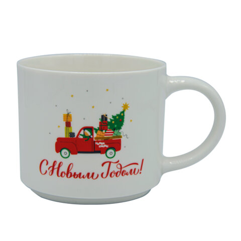 Кружка новогодняя 420 мл "Машинка", 10х9 см, каменная керамика, ЗОЛОТАЯ СКАЗКА, 592545