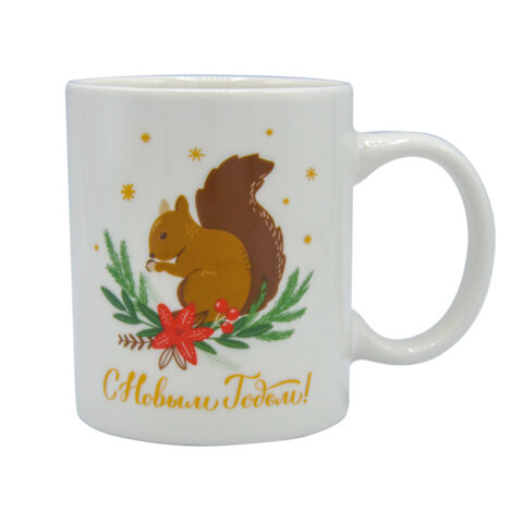Кружка новогодняя 330 мл, "Белочка", 8х9,5см, каменная керамика, ЗОЛОТАЯ СКАЗКА, 592544