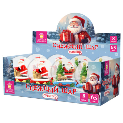 Снежный шар "Дед Мороз" d65мм, полистоун/стекло, 4 дизайна ассорти, ЗОЛОТАЯ СКАЗКА, 592598