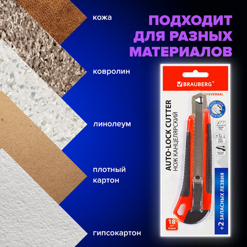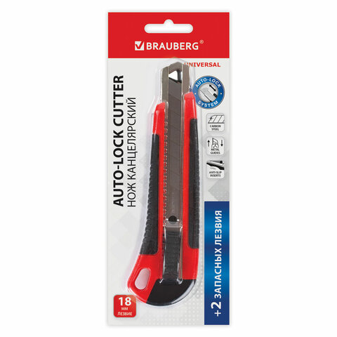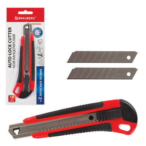 Канцелярский нож BRAUBERG «Universal» предназначен для разрезания по заданному рисунку или контуру бумаги, картона, более плотных материалов. Может использоваться при отрезании ковролина или линолеума.