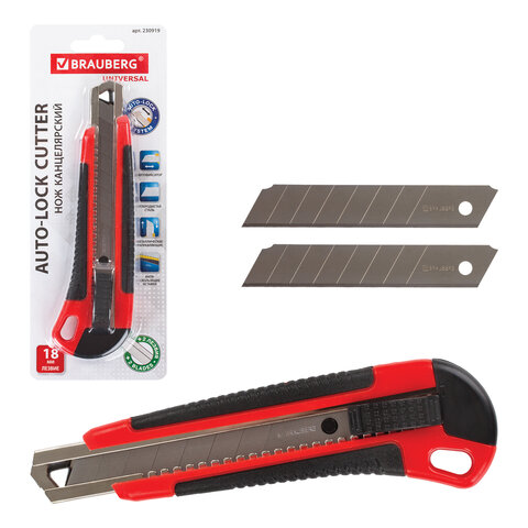 Канцелярский нож BRAUBERG «Universal» предназначен для разрезания по заданному рисунку или контуру бумаги, картона, более плотных материалов. Может использоваться при отрезании ковролина или линолеума.