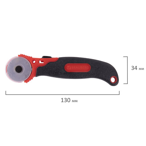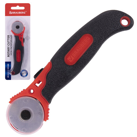 Нож раскройный роликовый 28 мм BRAUBERG, круглое лезвие, 238090