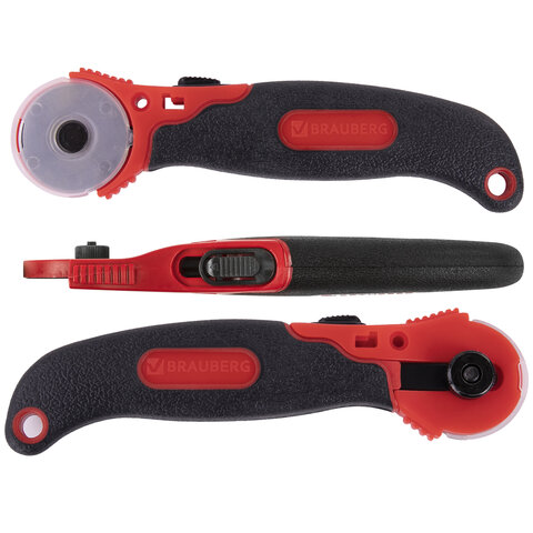 Нож раскройный роликовый 45 мм BRAUBERG, круглое лезвие, резиновые вставки, 237162