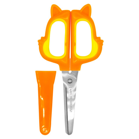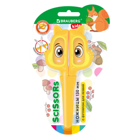 Яркие детские ножницы BRAUBERG "KIDS" с фигурными рукоятками с резиновыми вставками "Белочка" и чехлом. Ребенок без труда сможет ими пользоваться, так как их длина всего 130 мм. Симметричные ручки помогают уменьшить нагрузку на руку ребенка даже при интенсивной и продолжительной работе. Закругленные концы делают ножницы безопасными в использовании (при условии использования их по назначению). Ручки из пластика повышенной прочности и лезвия из нержавеющей стали обеспечивают ножницам максимально долгий срок службы. Продаются в блистере с европодвесом.