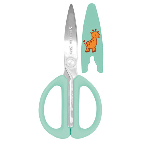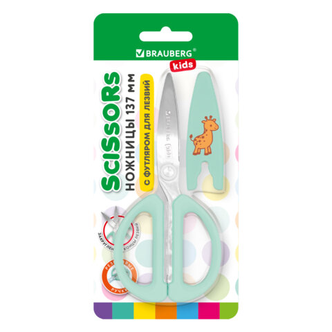 Яркие детские ножницы BRAUBERG "KIDS" с резиновыми рукоятками пастельно-мятного цвета и чехлом. Ребенок без труда сможет ими пользоваться, так как их длина всего 130 мм. Симметричные ручки помогают уменьшить нагрузку на руку ребенка даже при интенсивной и продолжительной работе. Ручки из резины повышенной прочности и лезвия из нержавеющей стали обеспечивают ножницам максимально долгий срок службы. Продаются в блистере с европодвесом.