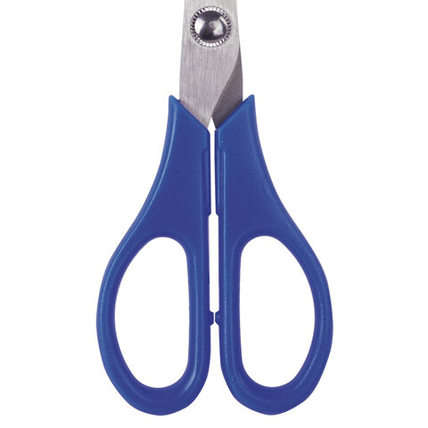 Ножницы BRAUBERG KIDS 130 мм, ручки небесно-голубые, закругленные лезвия с линейкой, 274060