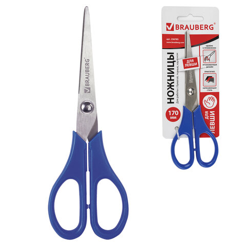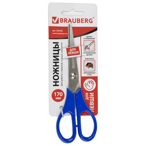 Ножницы BRAUBERG «Left hand» с двусторонней заточкой лезвий изготовлены специально для левшей. Они здесь развернуты под соответствующую руку. Это практичный, надежный и эффективный инструмент для обработки бумаги и картона.