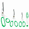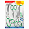 Лезвия ножниц изготовлены из высококачественной нержавеющей стали, что обеспечивает им высокую износостойкость. Благодаря двухсторонней заточке лезвия остаются острыми даже после интенсивной эксплуатации, сохраняя свои режущие свойства. Эргономичные ручки из пластика с резиновыми вставками обеспечивают удобный захват, что делает процесс резки комфортным. Общая длина инструментов составляет: 205 мм, 115 мм и 145 мм + сниппер для ниток.