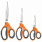 Лезвия ножниц изготовлены из высококачественной нержавеющей стали, что обеспечивает им высокую износостойкость. Благодаря двухсторонней заточке лезвия остаются острыми даже после интенсивной эксплуатации, сохраняя свои режущие свойства. Эргономичные ручки из пластика с резиновыми вставками обеспечивают удобный захват, что делает процесс резки комфортным. Общая длина инструментов составляет: 210 мм, 135 мм и 180 мм.