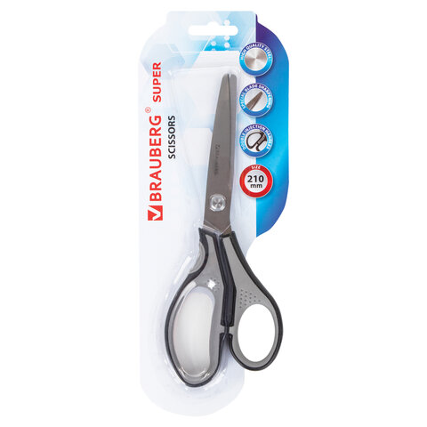 Ножницы BRAUBERG «SUPER» - удобный и точный инструмент для быстрой и аккуратной резки бумаги, картона и прочих материалов. Изделие изготовлено из прочных, износостойких материалов, которые не боятся высоких нагрузок.